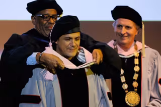 El encargado de otorgar el premio al cantante fue el presidente de la escuela Roger Brown. En su discurso hizo un resumen de la carrera profesional del artista sin olvidar el lado más solidario del cantante: "En reconocimiento a sus importantes contribuciones a la música y la sociedad y por la alegría que su música ha llevado a millones de personas alrededor del mundo, me complace investir a Alejandro Sanz con el doctorado honoris causa de la música de Berklee".
