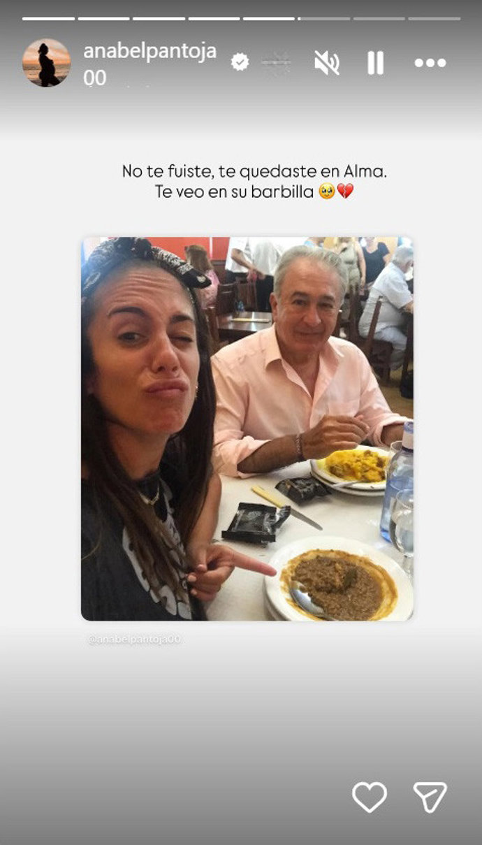Por último, Anabel Pantoja se ha acordado en esta fecha tan señalada no solo de su novio David Rodríguez, papá de su hija Alma (1), sino también de su propio padre, Bernardo Pantoja, fallecido en noviembre de 2022. "No te fuiste. Te quedaste en Alma. Te veo en su barbilla" ha revelado en sus historias junto a varias imágenes junto al hermano de Isabel Pantoja.