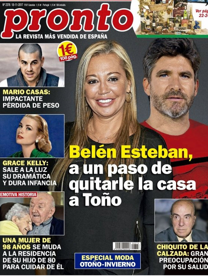 La revista los sitúa en portada bajo el titular "Belén Esteban a un paso de quitarle la casa a Toño".