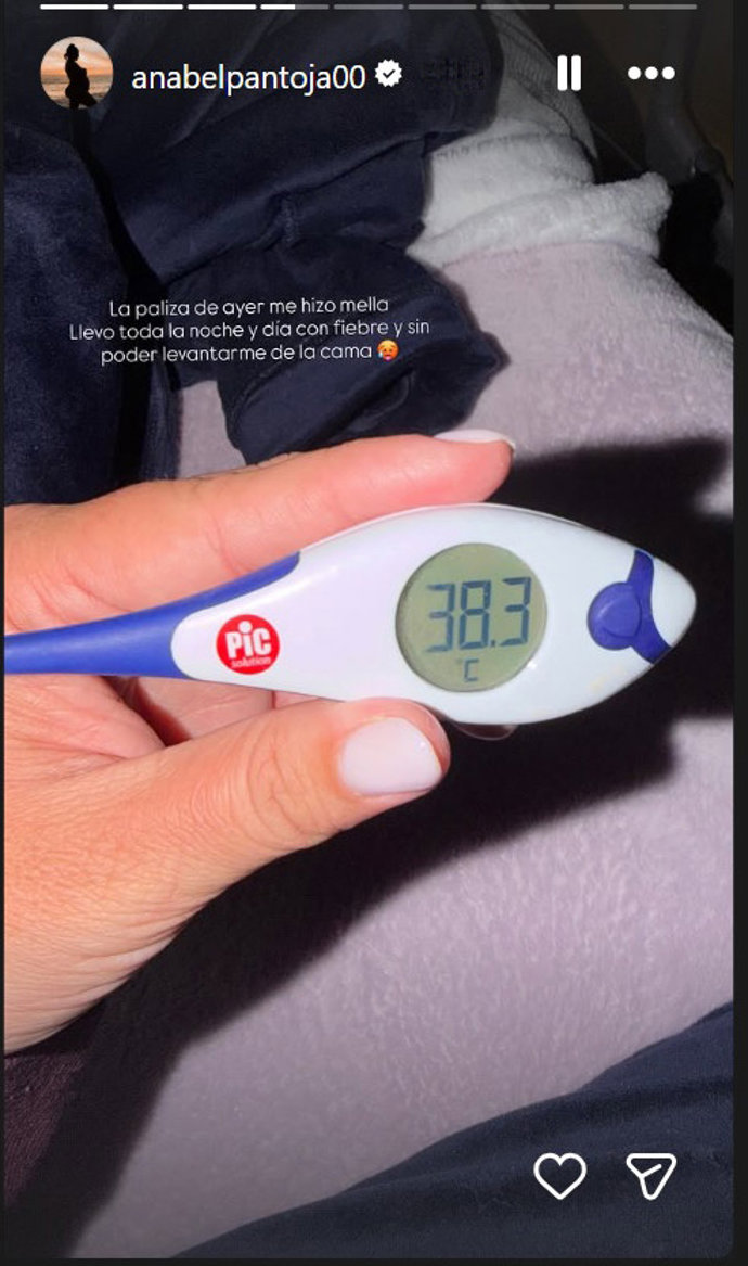 Y es que después de disfrutar de todo el día en las calles del barrio de Triana disfrutando de las procesiones y especialmente de la de San Gonzalo, de la que es devota, la influencer amanecía el martes con 38,3 de fiebre, como ella misma compartía con sus seguidores a través de sus historias de Instagram. "La paliza de ayer me hizo mella. Llevo toda la noche y día con fiebre y sin poder levantarme de la cama" revelaba compungida mostrando el termómetro con la temperatura.