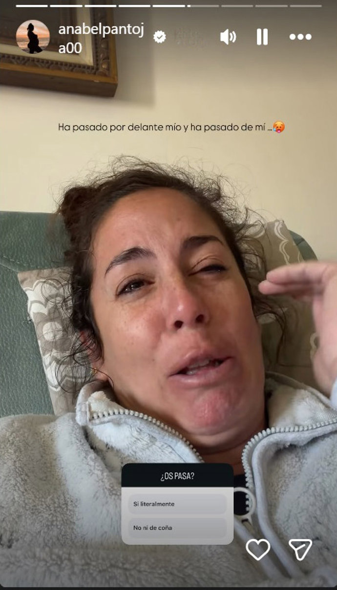 Lejos de quedarse ahí, Anabel ha publicado a continuación otro vídeo llorando desconsolada por la falta de interés de su madre, Merchi Bernal, ante su enfermedad en unas fechas tan especiales como la Semana Santa. "Me he levantado mal y le he dicho a mi madre que estoy mala y no me abraza. Solo quiere darle abrazos a mi hija. Pero cuando tengo fiebre solo quiero a mi madre y mi madre no me quiere a mí" se ha lamentado rota en lágrimas tumbada en el sofá mientras enfrente de ella su progenitora la ignoraba olímpicamente al estar pendiente de su nieta Alma, que se ha convertido en su gran alegría y de la que disfruta al máximo cada vez que viajan a Sevilla.
