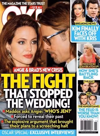 Según afirma OK! Magazine, Jennifer Aniston, ex mujer de Brad Pitt, fue la causa de que Angelina haya decidido parar los preparativos de su boda. El actor explicó abiertamente a su hijo la historia que tuvo con su ex mujer: "Jennifer era una mujer que amaba mucho y estuve casado una vez con ella" y tuvo la mala suerte de que Angelina lo escuchó todo.