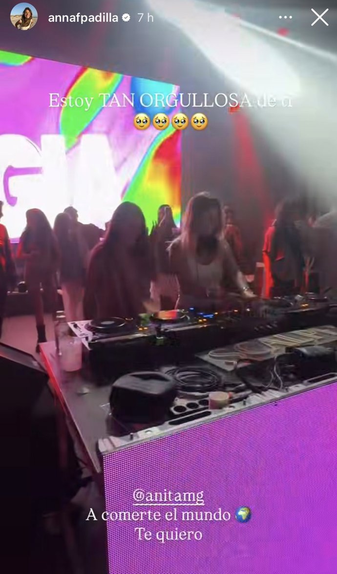 Desde el primer momento, Anita ha contado con el apoyo de sus amigos, muchos de los cuales han querido estar presentes y mostrarle su cariño públicamente a través de las redes sociales. Una de ellas ha sido Anna Padilla, gran amiga y compañera de aventuras, que ha publicado varios stories mostrando a la influencer en su propio camerino y pinchando en una carpa ante el público y acompañando los vídeos con el mensaje: "A comerte el mundo", animando y celebrando su debut.
