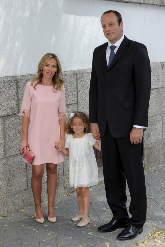 Lara Dibildos eligió un sobrio vestido fucsia que combinó con un cinturón dorado y salones a juego, fue la primera en llegar junto al anfitrión de la jornada, con un sencillo look con bermudas beige, americana azul marino, corbata y mocasines. Ambos posaron a las puertas de la iglesia acompañada por Laura Valenzuela. Instantes después se unía a la instantánea Fran, de 17 años y que ha heredado la altura de su deportista padre.