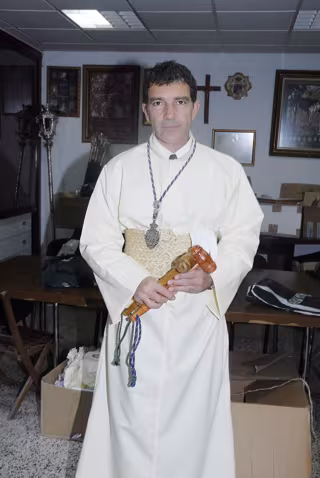 Antonio Banderas, miembro de una cofradía, es un fiel seguidor de la Semana Santa malagueña y de sus tradiciones. Este año ha sido el encargado de dar el pistoletazo de salida a las procesiones del Domigo de Ramos pronunciando el pregón. Banderas deja de lado su faceta de actor para ser un nazareno y ha portado al Santísimo Cristo de la Sangre.