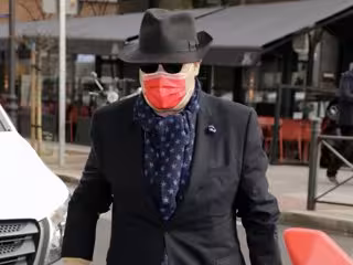Con un estilismo de lo más elegante para la ocasión, Resines lució pantalón oscuro, americana en color azul marino, pañuelo a juego y sombrero, intentando (sin conseguirlo) pasar desapercibido en su regreso al hospital tres semanas después de recibir el alta.