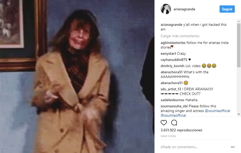 La cuenta de Ariadna Grande ya ha sido recuperada y parece que se lo ha tomado con humor porque la primera publicación que ha compartido con sus fans ha sido la de una imagen en movimiento de una mujer agitando la cabeza y los brazos con el mensaje: "Todos vosotros cuando me han hackeado esta mañana".