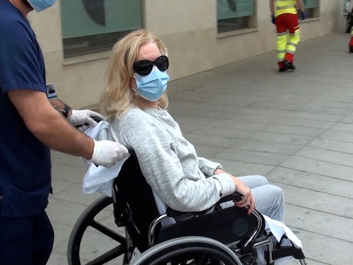 Visiblemente desmejorada, muy débil y en silla de ruedas, la actriz abandonaba el hospital con un ramo de flores en el regazo ocultando su mirada cansada tras unas grandes gafas de sol negras, y se reencontraba con su hija, Sofía Cristo, que muy emocionada se abrazaba a su madre tras semanas de incertidumbre y preocupación por su delicado estado de salud.