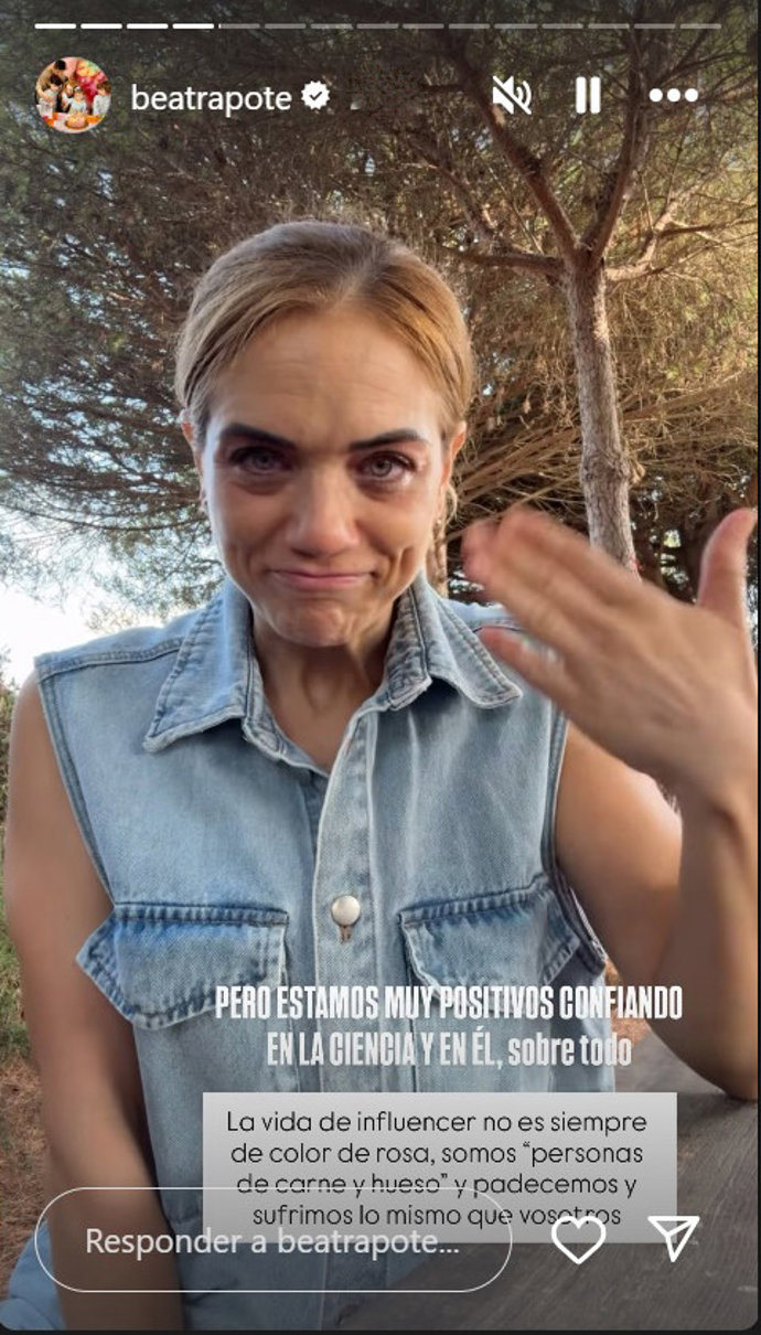 "La vida de influencer no siempre es de color de rosa. Somos personas de carne y hueso y padecemos y sufrimos lo mismo que vosotros". Con estas palabras Beatriz Trapote ha comenzado el que sin duda ha sido el mensaje más difícil que ha compartido en redes sociales, en el que se ha sincerado como nunca al revelar, rota en lágrimas, la grave enfermedad que padece su padre, uno de sus grandes pilares.