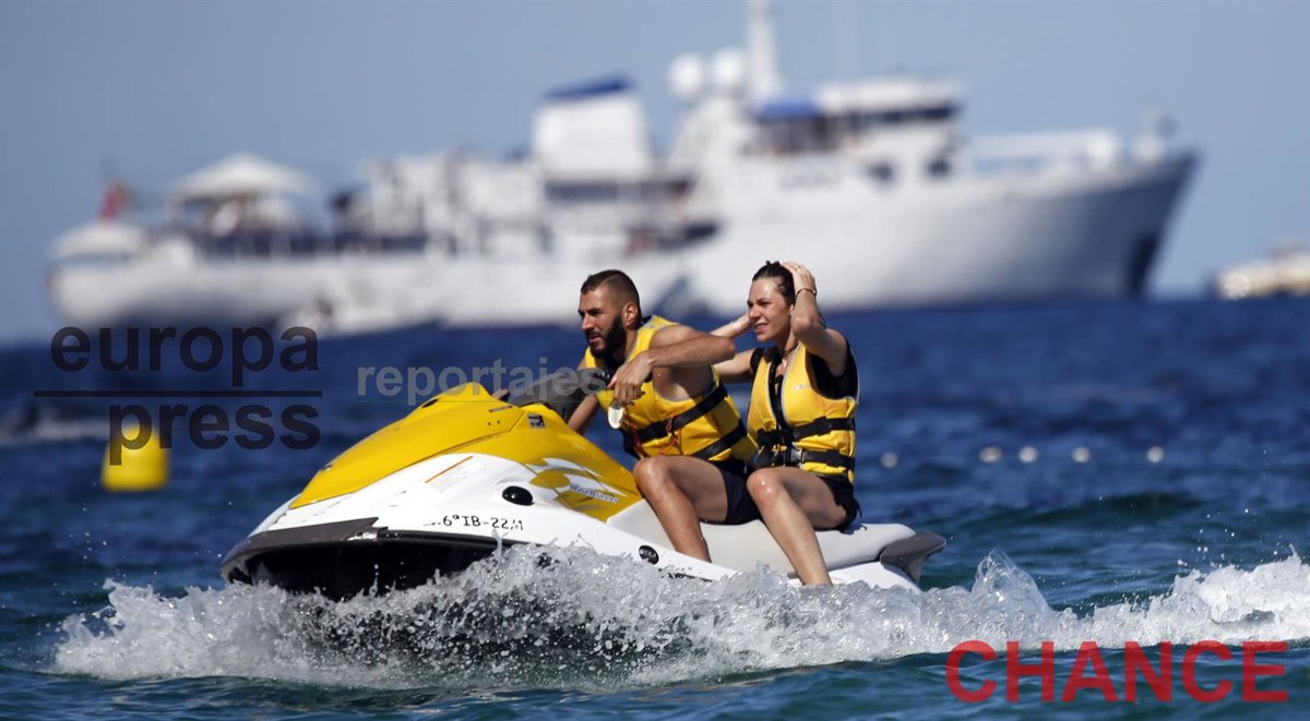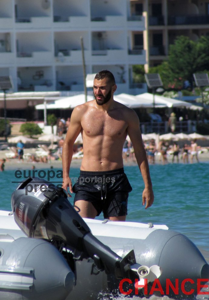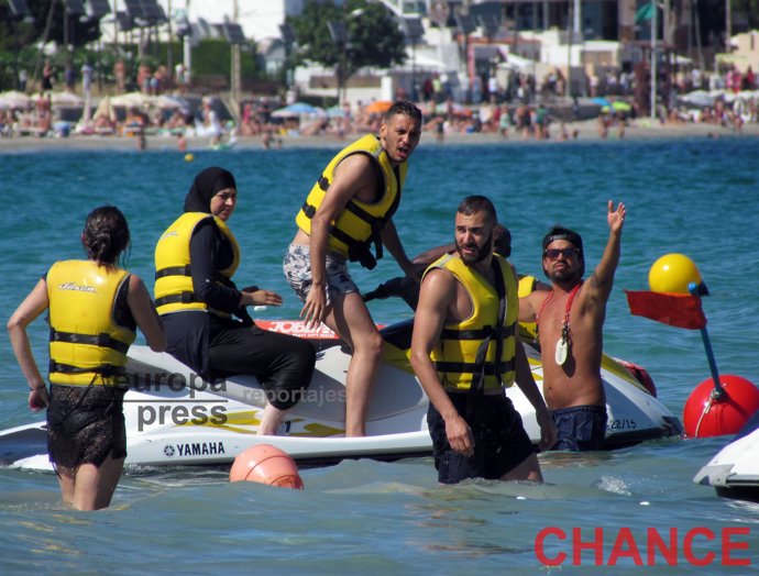 Junto a su hermana Naffisa, Benzema recorrió las aguas del Mediterráneo a bordo de una moto de agua para después montarse junto a ella y su mujer en un plátano hinchable donde los tres se lo pasaron de lo lindo. Además de ellos se encontraban algunos hermanos del futbolista y su madre, quien siguiendo la tradición que marca su religión, llevaba tapado el cuerpo y la cabeza.
