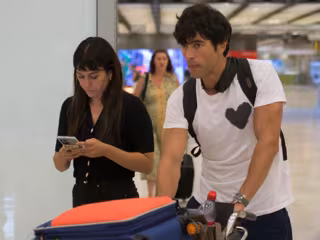 Intentando pasar desapercibidos entre el resto de turistas, el actor fue el encargado de empujar un carro en el que iban todas las maletas y su hijo subido, mientras que Blanca, más seria de lo habitual, estuvo pendiente de su teléfono móvil en todo momento. Apostando por la comodidad para volar, lució shorts negros y blusa blanca, y presumió de su nuevo corte de pelo, protagonizado por un flequillo corto tan complicado de llevar como favorecedor si tienes la belleza de la actriz.