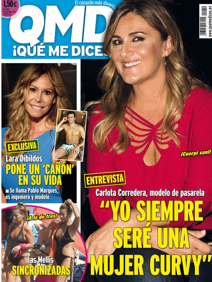 La revista ¡Qué me dices! ocupa su portada con la presentadora Carlota Corredera que desfilo en la Semana de la moda de Madrid defendiendo las tallas grandes y declara a la revista: "Yo siempre seré una mujer curvy".