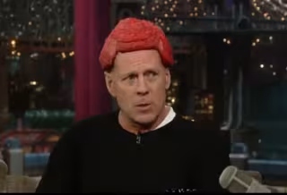 Tan sabrosa y apetitosa le debió parecer la peluca del actor al propio Letterman, que no dudó en pegarle un bocado, aunque después tuviera que salir del plató para escupirlo.