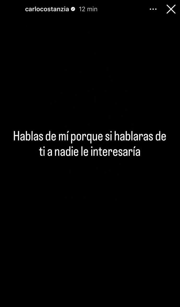 Carlo Costanzia vuelve a recurrir a las redes sociales en medio de la tormenta mediática que le rodea. El actor ha publicado en Instagram una enigmática imagen en negro acompañada de un mensaje contundente: "Hablas de mí porque si hablaras de ti a nadie le interesaría", una frase que muchos han interpretado como una respuesta directa a quienes llevan semanas opinando sobre su vida privada en televisión.