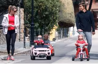 Aprovechando la desescalada y las agradables temperaturas que hace estos días en Madrid, Baute ha salido a dar un tranquilo paseo con su familia por los alrededores de su domicilio, a las afueras de la capital. El venezolano y su esposa se han mostrado pendientes en todo momento de sus tres pequeños, que se lo pasaron fenomenal en unos vehículos de juguete de lo más sofisticados.