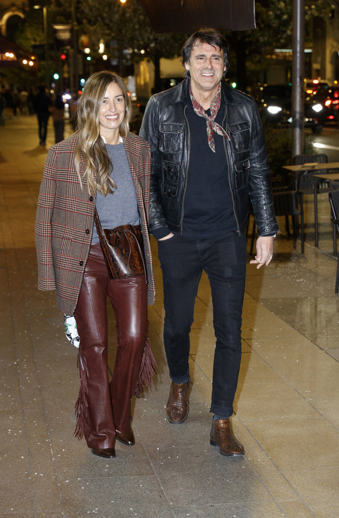 Una fiesta muy especial en la que Belén lució un look de lo más cañero compuesto por un minivestido negro con botonadura frontal y cinturón ancho a la cintura con el que presumió de piernas, cazadora al tono estilo biker, pañuelo al cuello para protegerse la garganta, y salones metalizados de tacón alto.