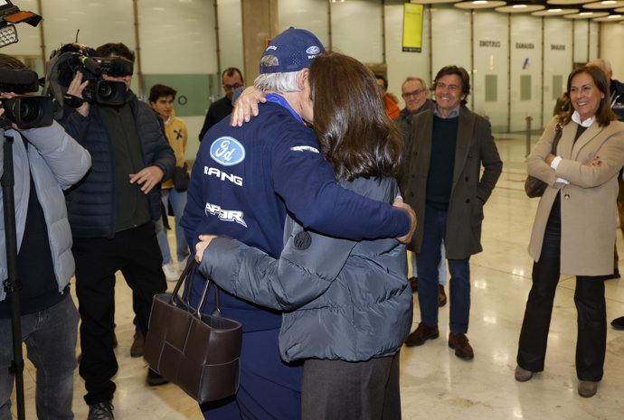 Tras una nueva aventura en el Dakar, y dejando en el aire si ha llegado el momento de la retirada definitiva a pesar de su meritorio 5º puesto en la exigente carrera de rallies, Carlos Sainz está de vuelta en casa. Este domingo el piloto aterrizaba en el aeropuerto de Madrid acompañado de su equipo y, como no podía ser de otra manera, era sorprendido por su mujer Reyes Vázquez y algunos de sus amigos más cercanos con una calurosa bienvenida -cartel con su nombre incluido- repleta de aplausos, besos y cariñosos abrazos tras esta competición con la que ha agrandado (aún más) su leyenda.