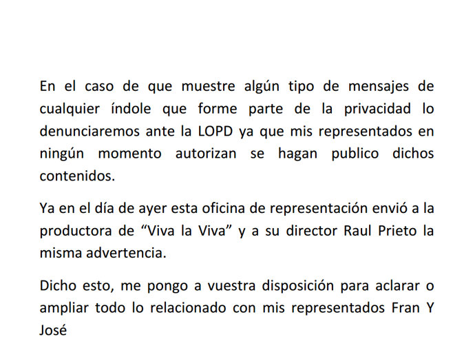Y continúan asegurando que interpondrán una demanda si se enseñan mensajes que formen parte de su privavidad.