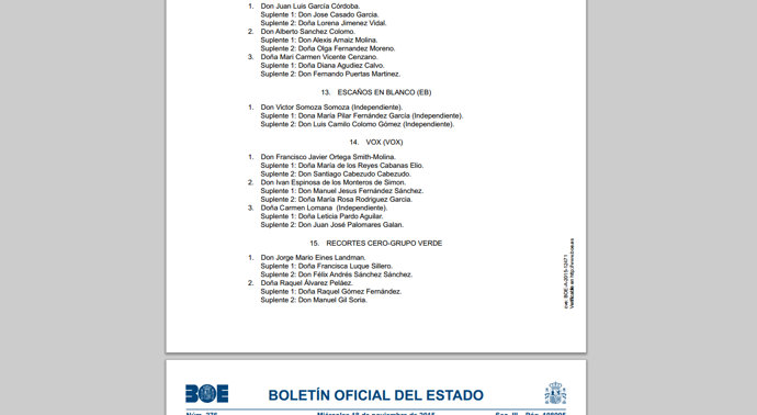 Este miércoles 18 de noviembre nos hemos levantado con la notificación en el BOE (Boletín Oficial del Estado) donde podemos leer que Carmen Lomana se presenta como número tres por el Senado para las próximas elecciones generales del 20 de diciembre de este 2015 por el partido político VOX.