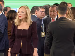 Como es habitual en la mayoría de sus aparicones públicas, Carmen eligió para la ocasión un look impecable con el que derroochó elegancia y comodidad a partes iguales. Confirmando por qué está considerada una de las mujeres más elegantes del panorama nacional, la tertuliana ha dado una lección de estilo con un dos piezas burdeos con maxi franjas finas en blanco compuesto por pantalón fluido tipo palazzo, y top estructurado de corte péplum con escote cuadrado, cremallera dorada frontal con hombreras marcadas. Un conjunto ideal que ha combinado con bolso de piel de asa corta en el mismo tono, y salones clásicos.