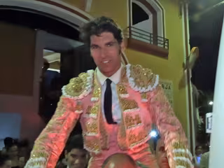 La jornada culmina con una victoria triunfal cuando Cayetano sale a hombros junto a 'El Fandi' y Sebastián Fernández en Bejar, Almería. Mientras da la vuelta al ruedo acompañado por un grupo de entusiastas niños, el torero muestra gratitud y satisfacción por su exitosa reaparición. Saliendo de la plaza a hombros, el aplauso del público y la admiración por su valentía son el cierre perfecto para un día inolvidable en la carrera de Cayetano Rivera Ordóñez.
