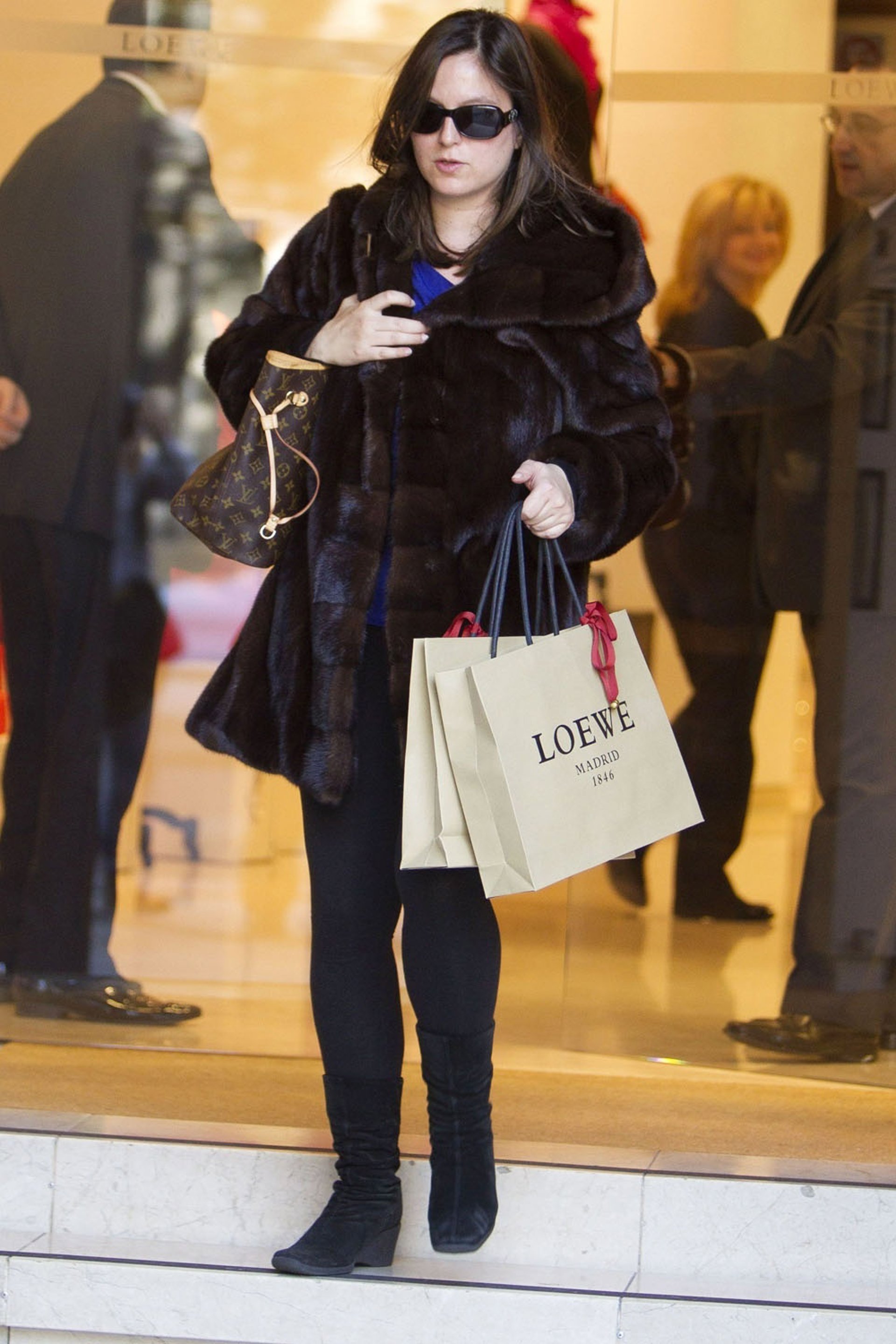 Además, la hija de Julio Iglesias e Isabel Preysler se cobijó del intenso frío con un gran abrigo de bisón y complementó su look con un maxi bolso de la firma francesa Louis Vuitton. Sin duda, un look total chic.