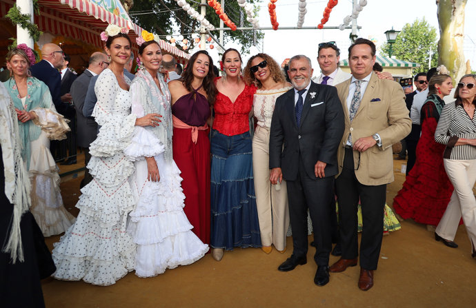 Con un estilismo que ha causado gran sorpresa a su paso por el Real, ya que en lugar del clásico traje de flamenca ha lucido una falda vaquera larga y una blusa roja con pequeños volantitos en la manga, la hija de Rosa Benito ha revelado exultante que hace "9 años" que no venía a la Feria, reconociendo emocionada que este plan tan especial con su marido Andrés Fernández ha sido posible "porque mi madre se ha quedado con mis hijos".