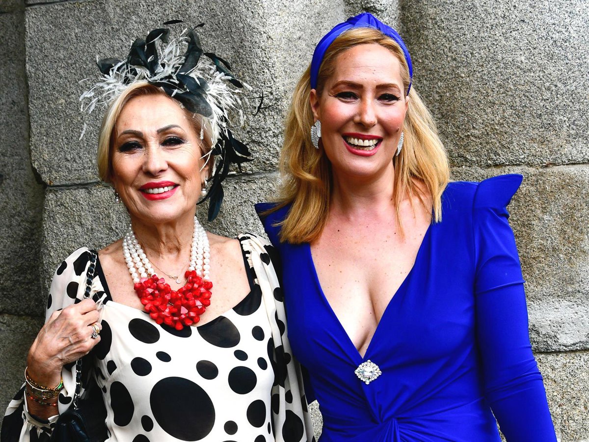 Amiga de Iván Reboso desde hace años, Chayo Mohedano ha sido uno de los rostros conocidos que no se han querido perder la boda del popular periodista con Joan Crisol. Acompañada por su madre Rosa Benito, la sobrina de Rocío Jurado acaparó todas las miradas con un llamativo y escotadísimo vestido azul eléctrico con drapeado en la parte frontal y diadema tipo turbante a juego, que combinó con complementos en dorado.