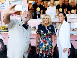 Una comida que se alargó durante varias horas y en la que Jill Biden estuvo acompañada, además de por sus nietas, por el chef José Andrés, muy popular en EEUU y con el que esa misma mañana la primera dama coincidió durante su visita al Centro de Refugiados de Pozuelo de Alarcón, con el que el cocinero colabora a través de su organización humanitaria 'World Central Kitchen', con la que ha repartido casi 80 millones de comidas en Ucrania.
