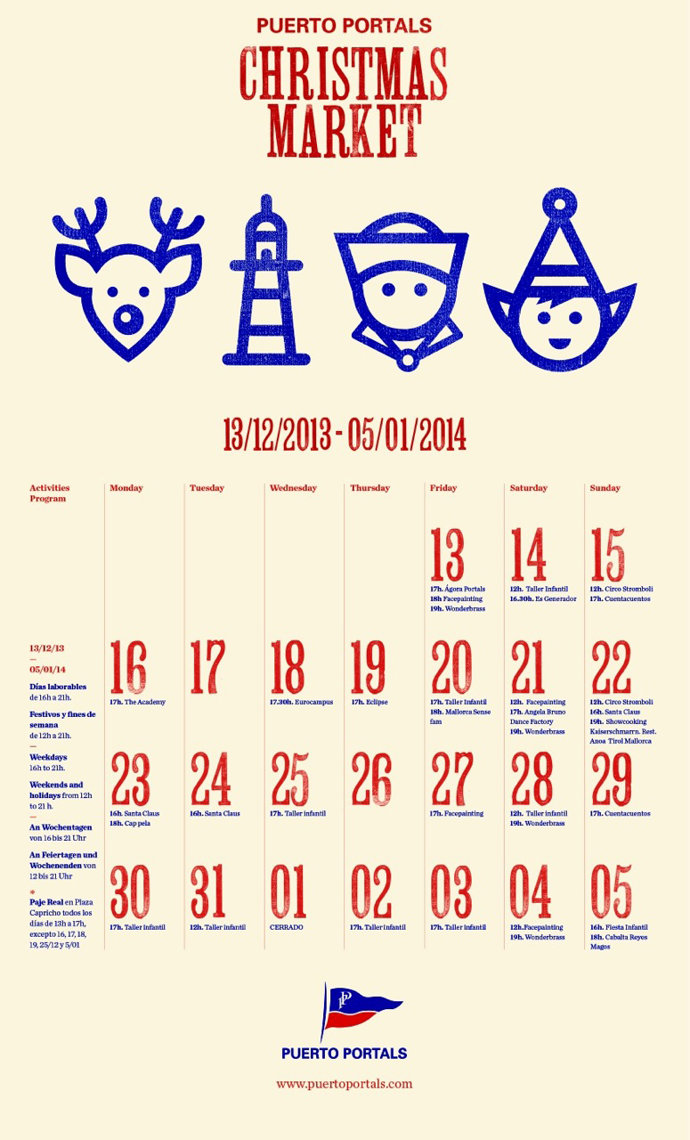 Desde el viernes 13 de diciembre hasta el domingo 5 de enero podrás disfrutar de una nueva edición de Christmas Market de Puerto Portals, un mercado gratuito, que ha sido creado para traer hasta España la magia y el espíritu de los mercados navideños del resto de Europa.