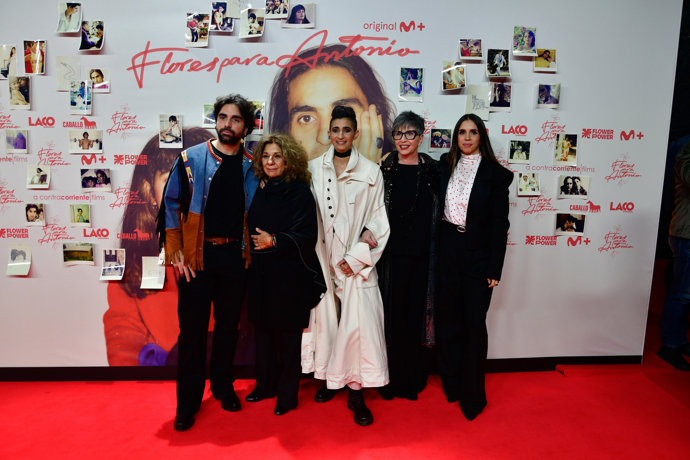 Noche tan emocionante como especial para la familia Flores, que presumiendo de su unión incondicional se ha dado cita este martes en el madrileño Cine Callao para arropar a Alba Flores en el estreno de la película documental 'Flores para Antonio', en la que su propia hija rinde homenaje al icónico cantante fallecido en 1995 de una forma muy íntima a través de vídeos caseros, fotografías inéditas, dibujos e imágenes de archivo que la actriz ha podido recopilar a lo largo de estos años.