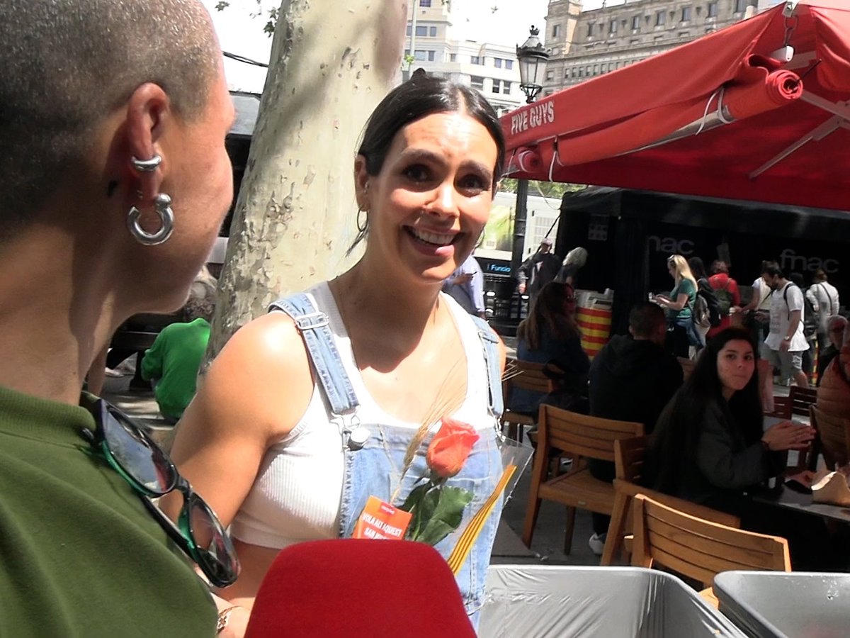 Riéndose y sin querer dar muchos detalles, Pedroche ha contestado que "hoy en Sant Jordi, es un día maravilloso", pero ha confirmado que ambos están "felices", desmintiendo así que estén pasando por un mal momento como pareja.