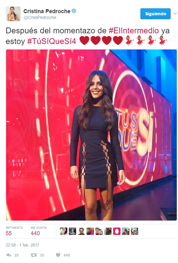 Pero los dos modelitos que llevó en El Intermedio no fueron los únicos que trajeron cola. Y es que a pesar de que Cristina insiste en que ella elige vestir sexy porque es una mujer libre, su vestimenta de anoche invita a pensar que se trata de una mera estrategia para subir audiencia.
