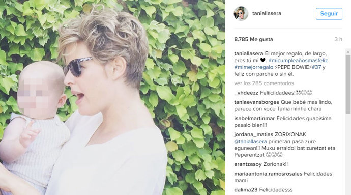 La presentadora Tania Llasera hoy cumple 37 años, y este es un cumpleaños de lo más especial, y así lo ha confirmado en su cuenta de Instagram, ya que es el primero que comparte con su pequeño Pepe Bowie: "El mejor regalo, de largo, eres tú mi corazón. #micumpleañosmasfeliz #mimejorregalo PEPE BOWIE #37 y feliz con parche o sin él".