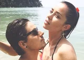 Junto a comentarios como "Rumble in the jungle" o "Happiness only real when shared", podemos ver a la pareja dándose un romántico beso o abrazándose entre aguas cristalinas.