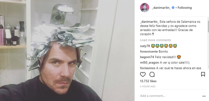 El cantante ha publicado una foto en su Instagram con papel de aluminio en el pelo en la peluquería. Poniéndose unas mechas de lo más feliz se ha mostrado el artista, que ha escrito el siguiente mensaje acompañando a la foto: "Esta señora de Salamanca os desea feliz Navidaz y os agradece como arrasáis con las entradas!!! Gracias de corazón".