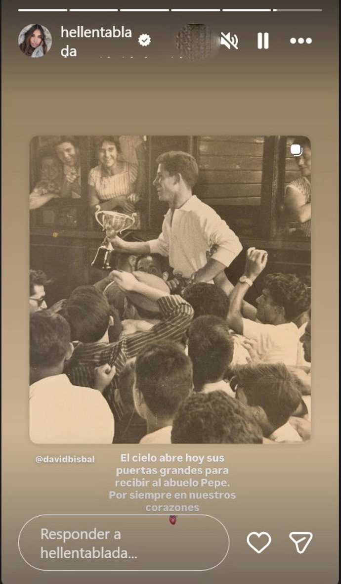 También Elena Tablada, expareja de David y madre de su hija Ella (15) ha reaccionado en redes sociales al fallecimiento del que fue su suegro. Y cogiendo una de las imágenes compartidas minutos antes por el cantante, ha publicado un emotivo storie en el que ha escrito "el cielo abre hoy sus puertas grandes para recibir al abuelo Pepe. Por siempre en nuestros corazones", demostrando el gran cariño que sentía por José Bisbal.