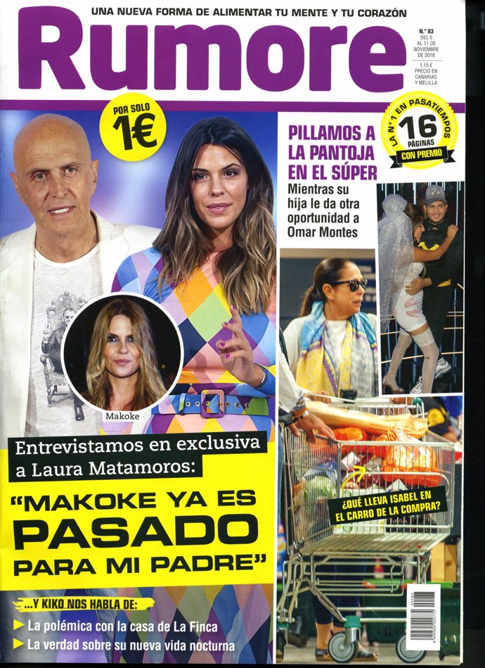 Rumore entrevista en exclusiva a Laura Matamoros para hablar sobre la separación de su padre: "Makoke ya es pasado para mi padre". Y Kiko Matamoros también habla para la revista sobre la polémica con su casa de La Finca y sobre la verdad en su nueva vida nocturna.