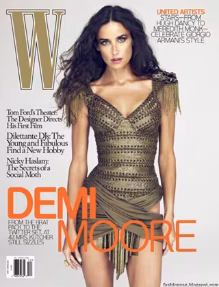 Enfundada en un cortísimo vestido dorado de Balmain y un pañuelo a conjunto anudado a la cintura a modo de falda, Demi Moore posa para portada de la revista 'W' demostrando que a sus casi 47 años está más sexy que nunca, en gran parte gracias a su marido, el también actor Ashton Kutcher.