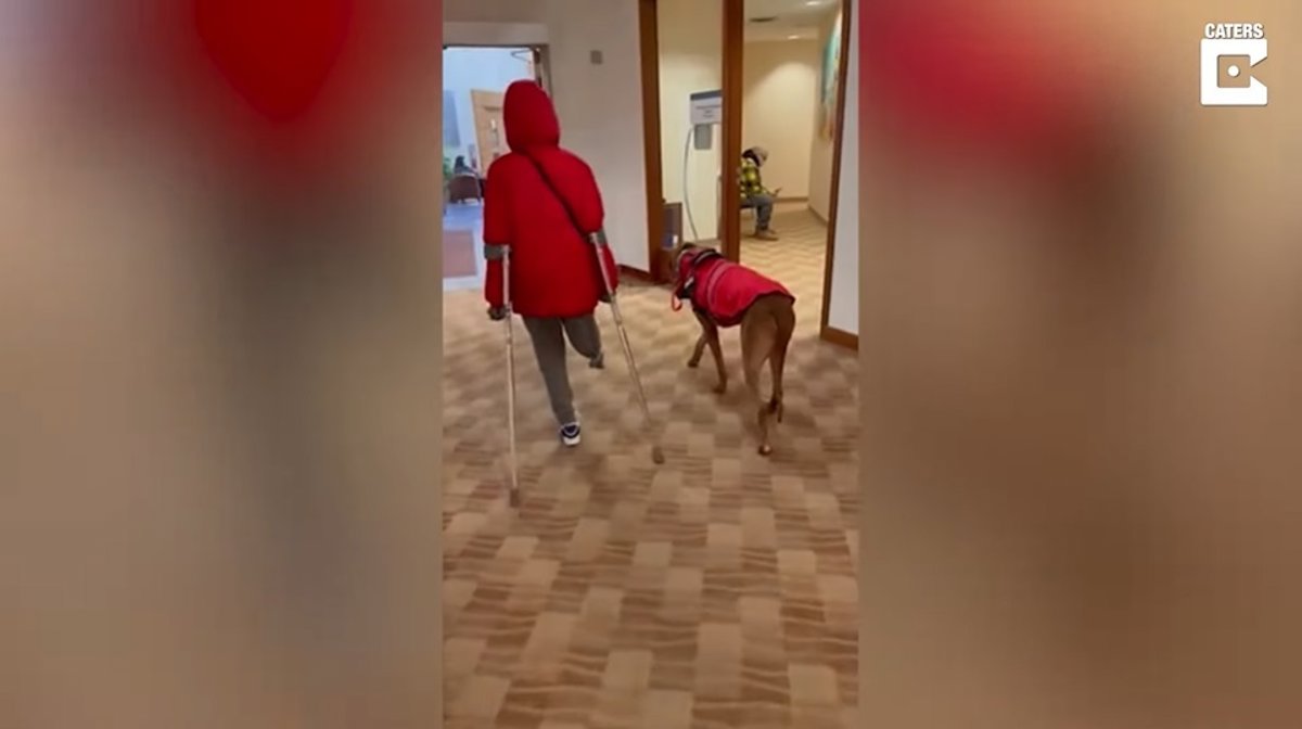Su madre Gina Stephens, de 32 años, preocupada por si su hijo iba a recuperar la movilidad pronto tras perder la pierna, decidió buscarle un perro de servicio que le ayudara a caminar.