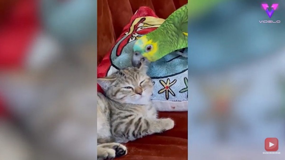 Entrañable amistad entre un loro y un gato - YOUTUBE - VIDELO - MUBARAK HATRASH