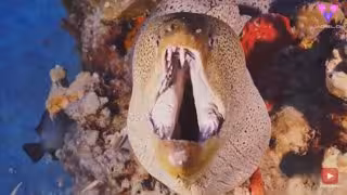 En el vídeo se puede ver al pez de dos metros de largo descansando en el fondo de un enorme coral, aunque lo más llamativo de las imágenes es que, tal y como contó Massimo a Caters, la morena está enseñando sus largos y afilados dientes para respirar.