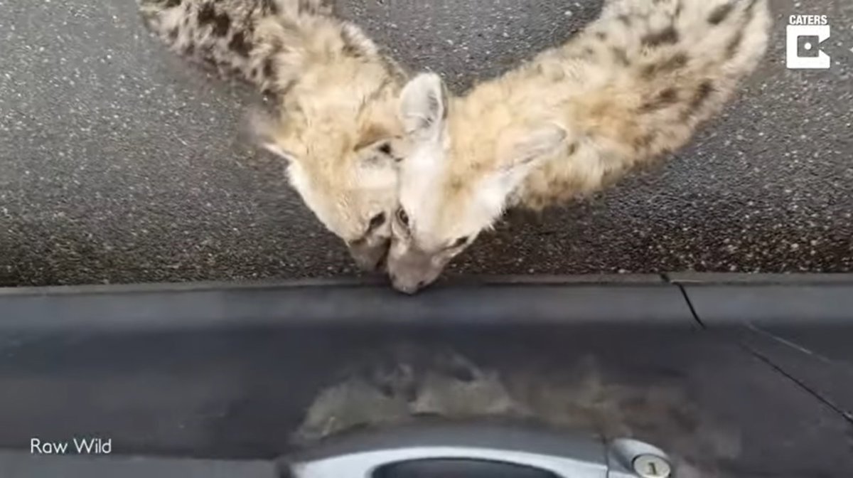 Un par de curiosos cachorros de hiena interactúan con un coche en un safari en Sudáfrica - YOUTUBE - CATERS - RAW WILD