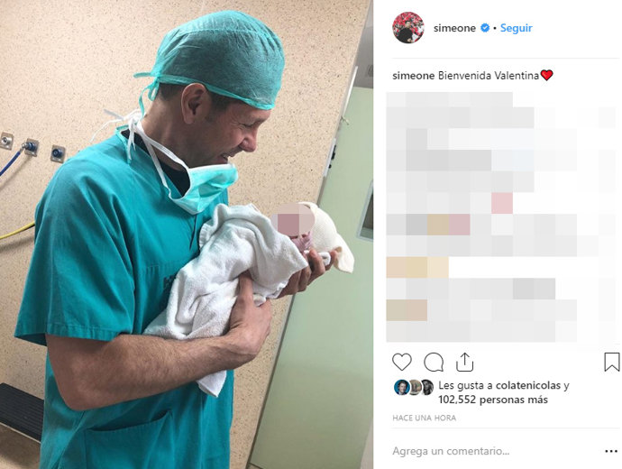 Aun vestido de verde y con el gorro para poder entrar en paritorio puesto, Diego ha cogido a la pequeña en brazo y con la expresión máxima de felicidad en su cara ha captado el momento para comunicar a sus seguidores el nacimiento de su hija. "Bienvenida Valentina", es el único mensaje que acompaña a la publicación que habla por si sola.