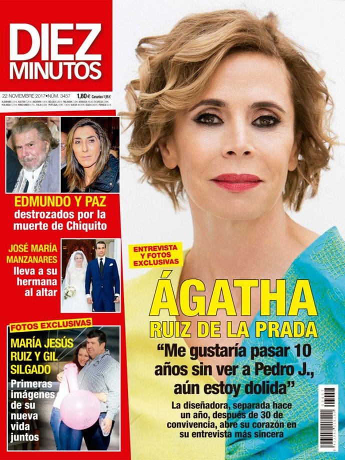 Ágatha Ruiz de la Prada protagoniza la portada de Diez Minutos un año después de anunciar su divorcio con Pedro J. Ramirez: "Me gustaría pasar diez años sin ver a Pedro J., aún estoy dolida".