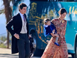 Fernando Fitz-James Stuart y Sofía Palazuelo acudieron al acto con la pequeña Rosario, que, con tan solo un año fue la reina de las miradas por lucir un traje de color azul con el que triunfó. En brazos de su madre, la pequeña se dejaba ver de lo más risueña llegando al convite.