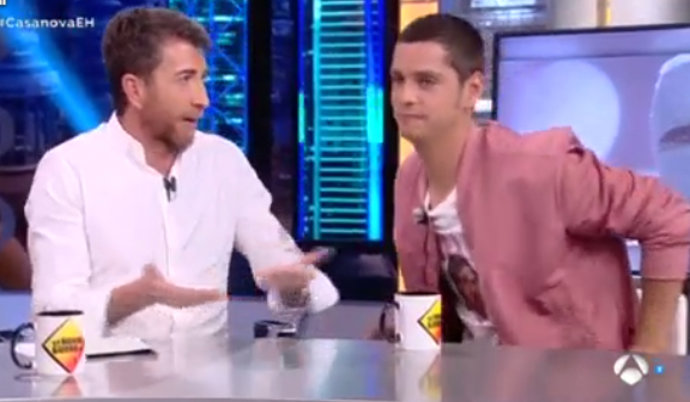 El mítico actor que dio vida a Fidel Martínez de la serie Aída, protagonizada por Carmen Machi, Eduardo Casanova, ha visitado El Hormiguero para presentar su primera película como director. Pieles es el primer largometraje que el actor hace como director. Casanova afirma que la cinta está hecha con el objetivo de reivindicar a las personas que "a pesar de ser discriminadas por ser diferentes, no se quedan en el papel de víctimas". Casanova teníua muchas ganas de acudir al programa y ha entrado dando brincos, literalmente.