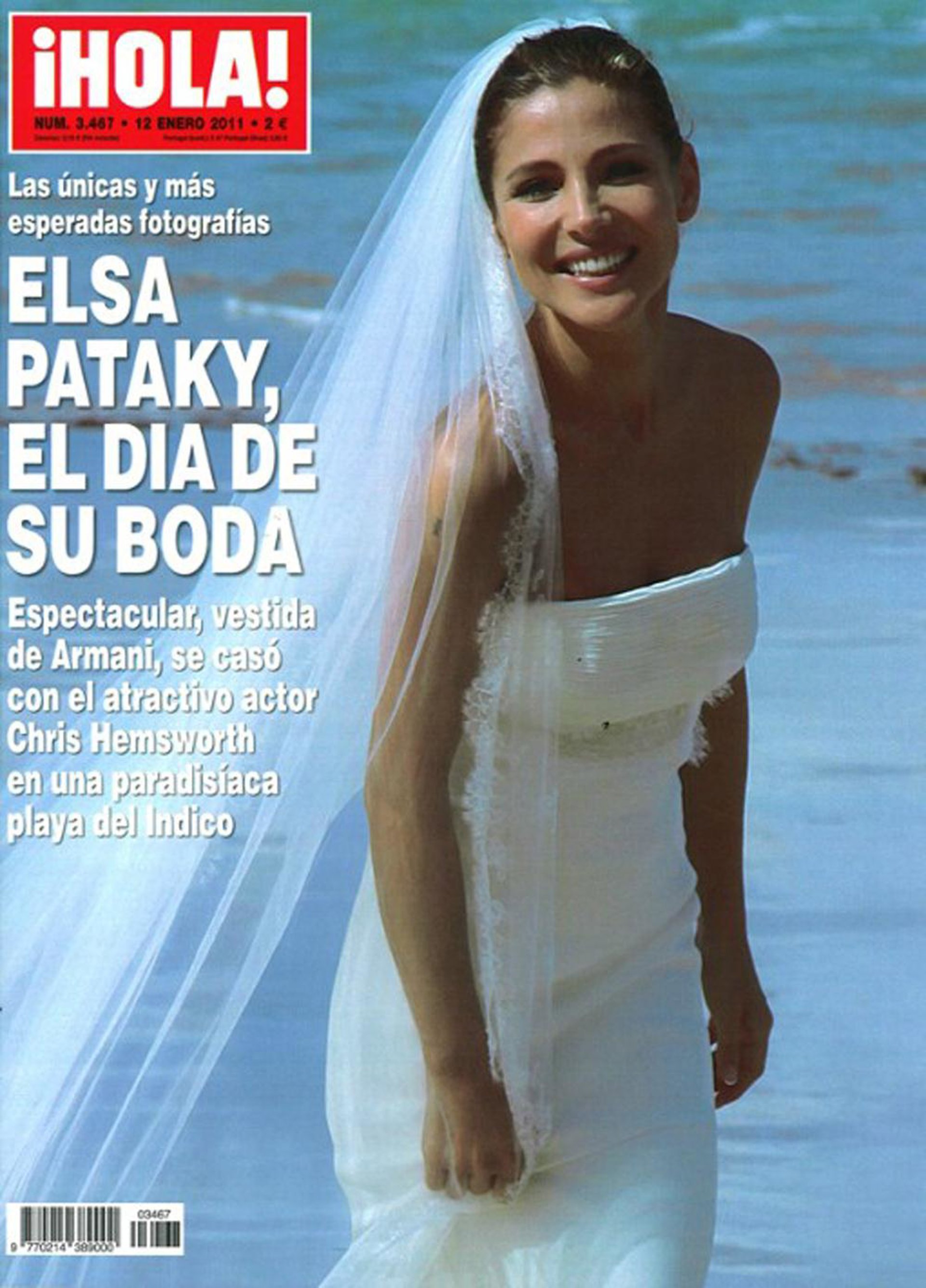 La revista '¡Hola!' ofrece esta semana dos de las fotografías más esperadas, Elsa Pataky vestida de novia el día de su boda con Chris Hemsworth. Tras un año saliendo juntos, la pareja de actores se dio el sí quiero el fin de semana de Navidad en un paraje paradisíaco, las exóticas playas del Índico.