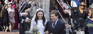 De hecho, a la salida de la boda, al día siguiente, la pareja salió en lugar de entre sables, entre palos de esquí.