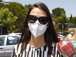 Con un mono en colores blanco y negro, gafas de sol y la reglamentaria mascarilla sanitaria contra el Covid-19, Esther - que padeció dicha enfermedad pero se ha recuperado totalmente - era de los primeros rostros conocidos en llegar al Tanatorio de Tres Cantos, donde se está celebrando el velatorio de Manolo Segura.